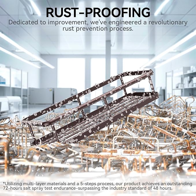 - 72-Hour Rust Test Ensures Longevity in Wet Conditions: The shower racks are coated with multi-layer premium rustproof materials and have passed the salt spray test up to 72 hours, exceeding the 48-hour standard. Thanks to the well-crafted finish, the shower wall caddy can last for more than 8 years in humid conditions. Also, the whole hollow design makes it convenient to ventilate and clean