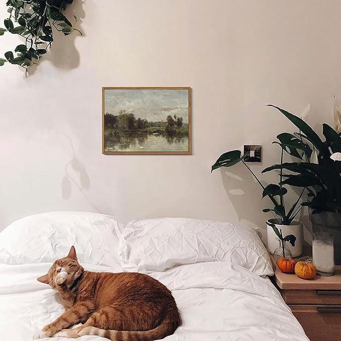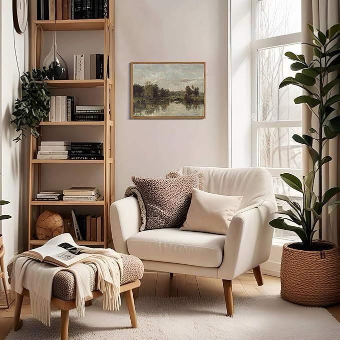 - Framed Canvas Wall Art: This vintage wall art captures the serene beauty of a tranquil river landscape, bringing a peaceful countryside atmosphere to your home. Ideal for living room wall decor, bedroom wall art, or as office wall art, it adds a touch of elegance to any space.