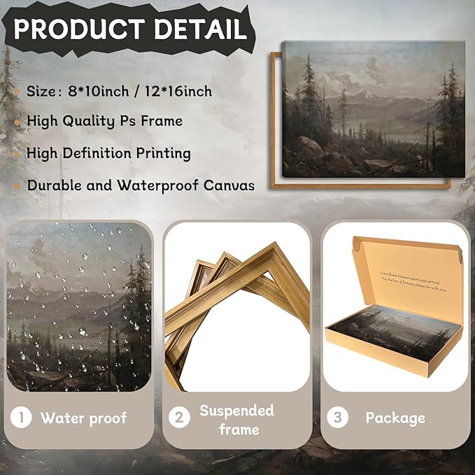 - Framed Canvas Wall Art: This majestic mountain forest landscape canvas print brings the grandeur of nature into your home. Perfect for adding a serene and timeless touch to your living room wall decor, bedroom wall art, or bathroom wall art.