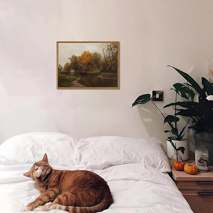 - Framed Canvas Wall Art: This vintage autumn by the water landscape canvas print captures the tranquil beauty of nature, adding a warm and peaceful touch to your living room wall decor, bedroom wall art, or office wall decor.