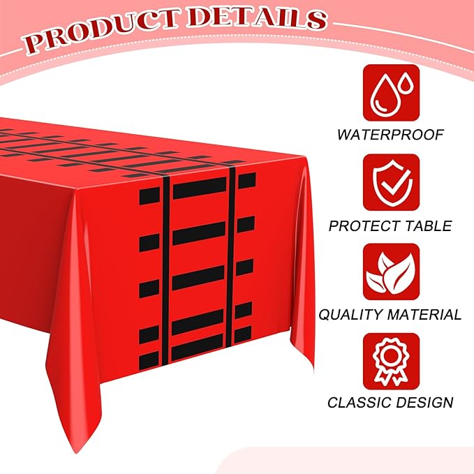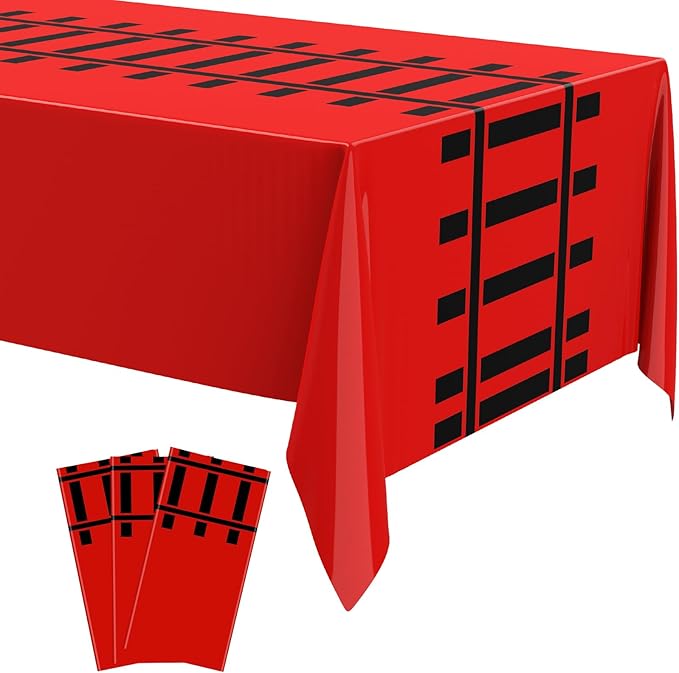 3 Pcs Train Party Decorations Railroad Track Tablecloths Train Birthday Party Supplies 54 x 108 Inch Plastic Table Covers for Railroad Track Western Theme Birthday (Red)