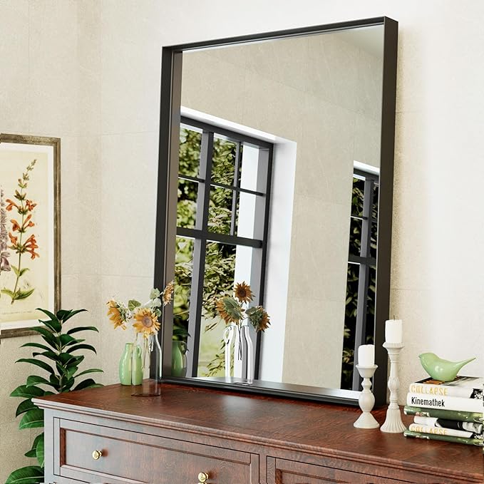 - 【Durable Black Metal Framed Mirror】Dimelax rectangular wall mirror has the most chic spray paint finish. The black bathroom vanity mirror is made of premium alumium alloy frame, which is anti-rust and non-deformed stylish and more durable, Light weight, good corrosion resistance and wear resistance. It's a great choice for your home life