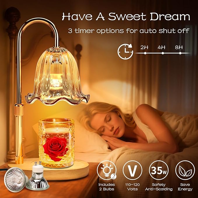 - [Relieve Stress]: At the end of a busy day's work, you are physically and mentally exhausted. Let the wax melt warmer be your stress reliever. The warm glow and soothing aroma of the candle warmer lamp with timer allows fatigue and stress to quietly dissipate in this moment. It's more than just a lamp, it's an investment in your emotional well-being, allowing you to rediscover the beauty of life in tranquillity