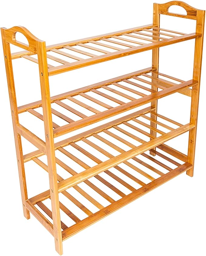 - 【Versatile Usage】 The bamboo shelf can use as a shoe rack to place in the hall, closets, entryway, hallway, living room, bed room, balcony, etc. And the 4 tiers bamboo rack can also as a storage rack to place towels, sundries, books, plants, spice and small appliances in many places. It not only saves space but also keeps your room organized.