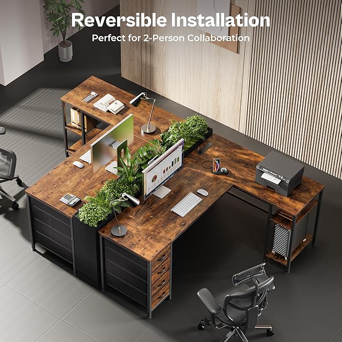 - 【Reversible Home Desk with Larger Legroom】Reversible L-shaped design lets you set up the work desk or gaming desk left or right to fit your space. Want a shared workspace or gaming room? Combine l shaped desks with storage for a roomy 2-person setup — great for home offices or open workspaces with lots of legroom