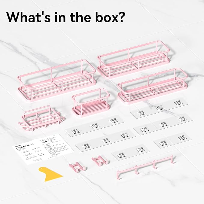 - 6 Pieces for Versatile Home Organization: The 6-piece bathroom shower shelves can be used not only in shower, but also in other cluttered areas at the same time, such as organizing spices in kitchen or cleaning supplies under sink, to keep everything in your home neat and tidy. And its sleek and modern look will add a touch of elegance to your family as a great home decor