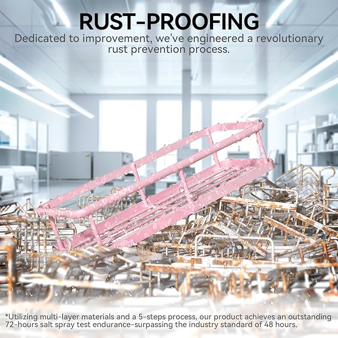 - 72-Hour Rust Test Ensures Longevity in Wet Conditions: The shower racks are coated with multi-layer premium rustproof materials and have passed the salt spray test up to 72 hours, exceeding the 48-hour standard. Thanks to the well-crafted finish, the shower wall caddy can last for more than 8 years in humid conditions. Also, the whole hollow design makes it convenient to ventilate and clean