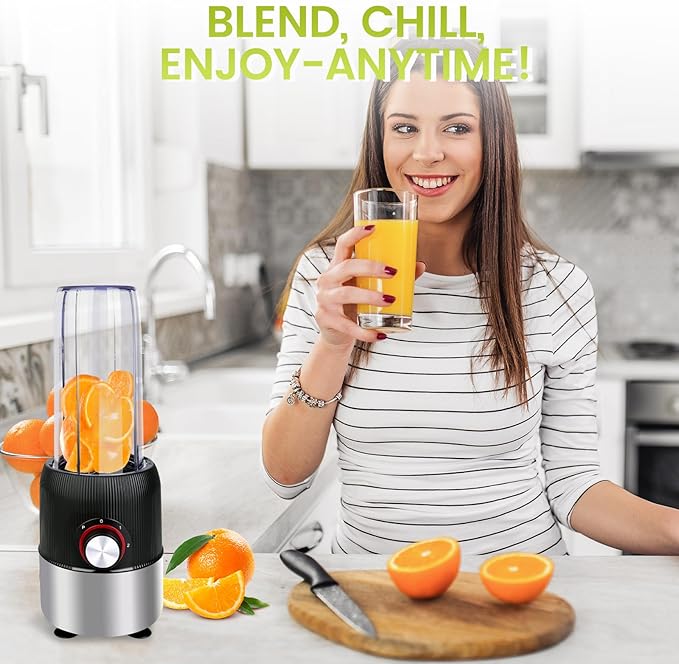 - 【PORTABLE AND CONVENIENT】 – The personal blender comes with a 27oz travel bottle and a secure travel lid, allowing you to blend your beverage and take it on the go. Loved by users for its lightweight, compact design, it’s perfect for travel, picnics, or office breaks. Its small size makes it easy to store, keeping your kitchen neat and organized.
