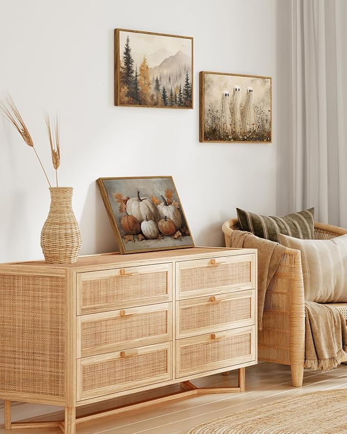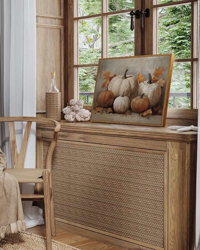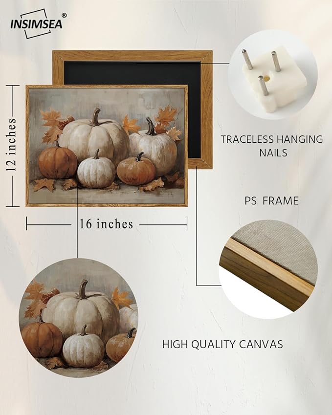 InSimSea Framed Canvas Wall Art Vintage Decor, Fall Pumpkin Wall Decor for Living Room Bedroom Bathroom, Rustic Autumn Still Life Paintings Prints, Halloween Desk Decorations, 12x16inch