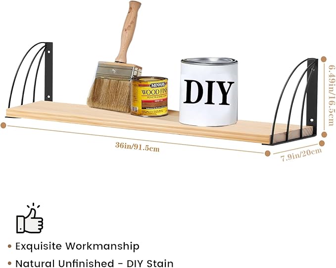 - ✅ECO-Certified Natural Aesthetic—Finished with CARB Phase 2 certified semi-gloss paint that: Preserves authentic wood grain patterns for rustic wood floating shelves Emits 0.01ppm formaldehyde (99% below industry average) for wood shelves for wall Each shelf showcases unique natural timber veins for farmhouse floating shelves