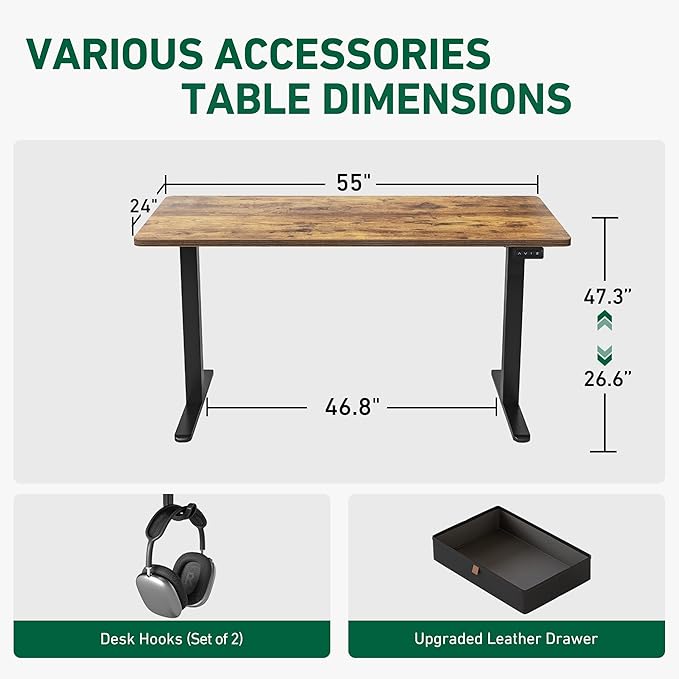 FEZIBO 55 x 24 Inches Standing Desk with Drawer, Adjustable Height Electric Stand up Desk with Storage, Sit Stand Home Office Desk, Rustic Brown