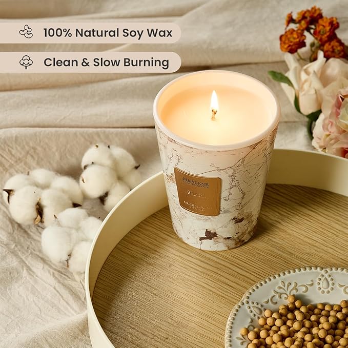 - 【Long Lasting for 80 Hours】The scented candles are made of 100% natural soy wax. Natural soy candles do not produce thick black smoke when lit and are safe for children and pets. Using lead-free cotton wicks, our candles have a burn time of up to 80 hours giving you a fresh and long-lasting scent experience.