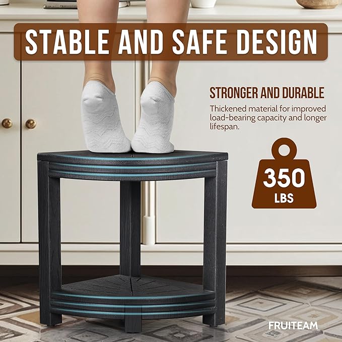 - SMART MULTI-FUNCTION DESIGN: More than just a shower stool, this innovative shower bench works as a footrest, storage shelf and shaving platform. The corner shower stool's dual-layer design adds modern style while enhancing bathroom functionality.