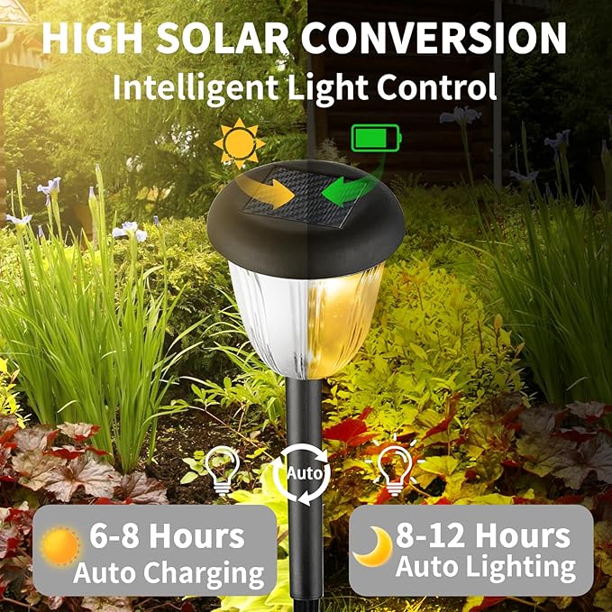 - Long-Lasting and Hassle-Free: Our solar garden lights charge for 6-8 hours in direct sunlight and provide up to 8-10 hours of illumination at night. With their automatic operation and eco-friendly nature, they offer a hassle-free lighting solution that lasts all night long. Best Choice for garden decor.