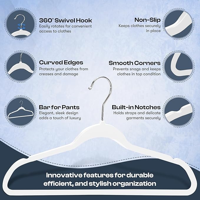 - 🙌Non-Slip Surface: Unlike white hangers velvet, these white hangers plastic feature a no slip hangers surface. This helps keep garments securely in place, reducing the risk of clothes slipping off and resulting in a tidy wardrobe.