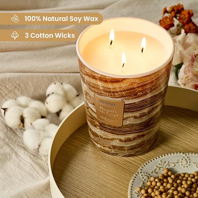 - 【Long Lasting for 150 Hours】The scented candles are made of 100% natural soy wax. Natural soy candles do not produce thick black smoke when lit and are safe for children and pets. Using 3 lead-free cotton wicks, our candles have a burn time of up to 150 hours giving you a fresh and long-lasting scent experience.