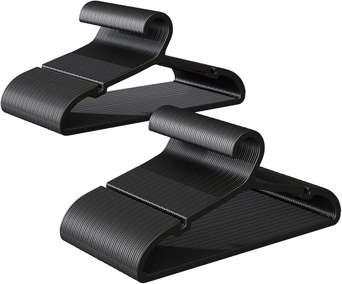 100 Pack Clothes Hangers, Non Slip Plastic Coat Hangers, Space Saving Hangers, Heavy Duty, Hanging Dry Wet Clothes, 16.4" x 8.3", Black, UAPY05100B