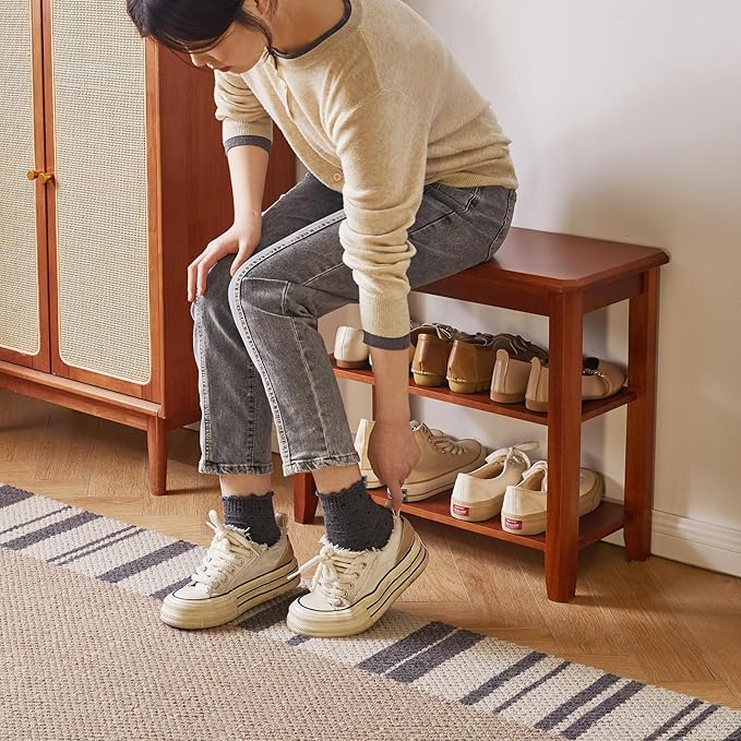 - Durable material: This shoe bench is made of natural solid wood, with a sturdy and durable structure. Whether it is light casual shoes or heavy boots, this shoe bench can handle it easily and is durable