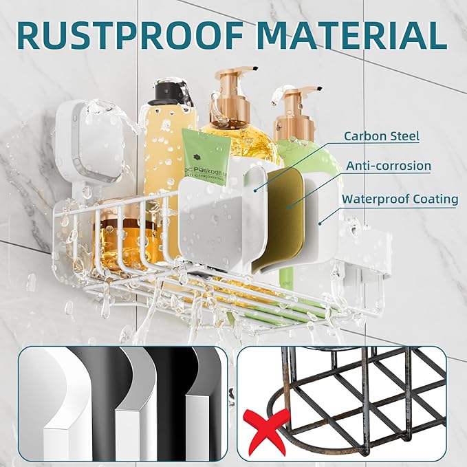 - Durable & Strong Suction: Our suction cup based on the bionics octopus sucker principle is made of TPE material. Each suction shower caddy with 2 suction cups holds up to 22 lbs. Shower caddy suction cup is waterproof and keeps stable and sturdy when showering