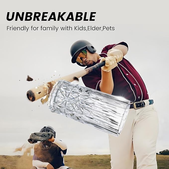 - Unbreakable and Shatterproof: Our break-resistant glassware is made of ultra-durable American Tritan that comes with crystal-clear clarity. The durable tumblers offer worry-free maintenance and zero fragility, with no sweat when placed on surfaces