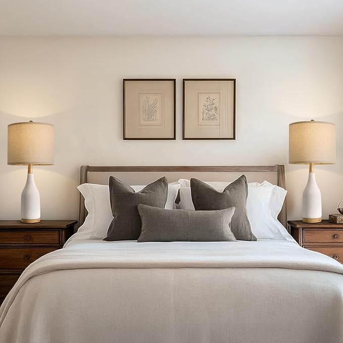 PORTRES 27" Ceramic Table Lamps for Bedroom Living Room Vintage Lamp Set of 2 Bedside Nightstand Lamp Large Farmhouse Rustic Boho Retro Modern Table Lamp Light Home Office Desk Deco Gifts, White