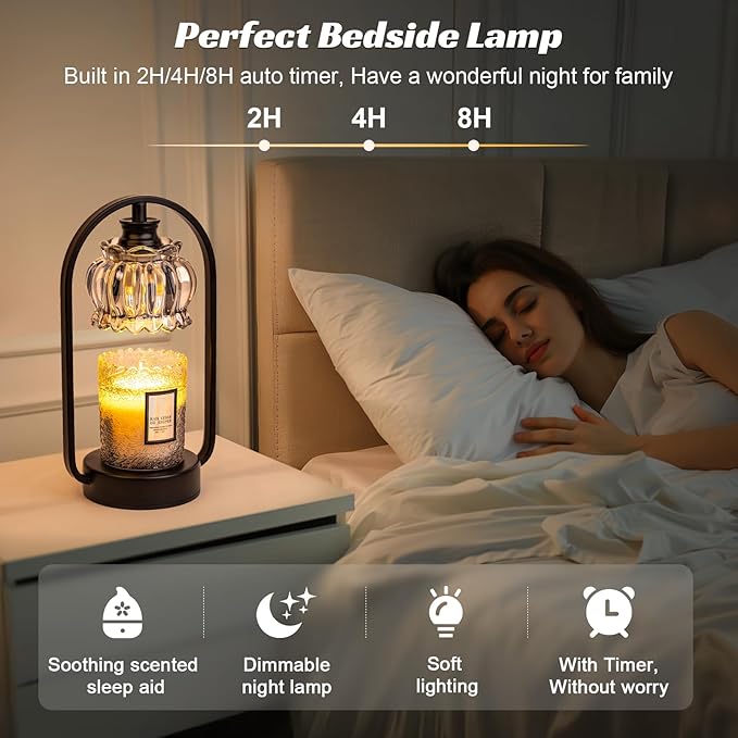 - Smart Timer Function - Never worry about leaving your candle warmer on again! With our innovative timer function, you can easily set the lamp for 2, 4, or 8 hours. This thoughtful feature lets you enjoy your favorite scents without the stress of remembering to turn it off, providing peace of mind while you sleep or go about your day. Itβs a safer, more economical alternative to traditional candles, allowing you to focus on what truly matters.4.