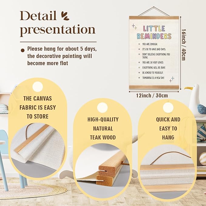 ZTGDA Little Reminders Mental Health Wall Art – Positive Affirmations Poster with Wooden Hanger, Motivational Canvas Sign for Kids Room, Therapy Office, or Classroom Decor, 12x16 Inches (Reminders)