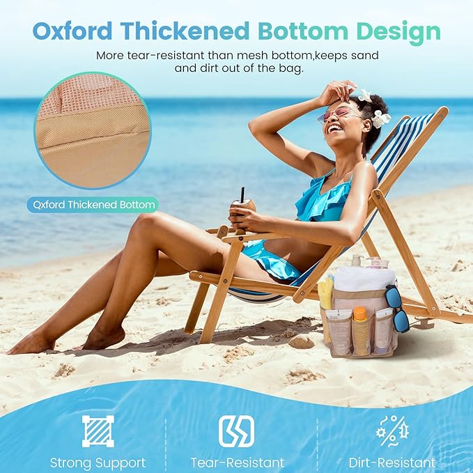 - Reinforced Base, Stronger Support:For the most essential part of this beach bag, we utilize highly strong and durable Oxford fabric for the bag base, delivering higher weight capacity, wear and tear resistance. The base supports travel essentials firmly and keeps them away from sand.