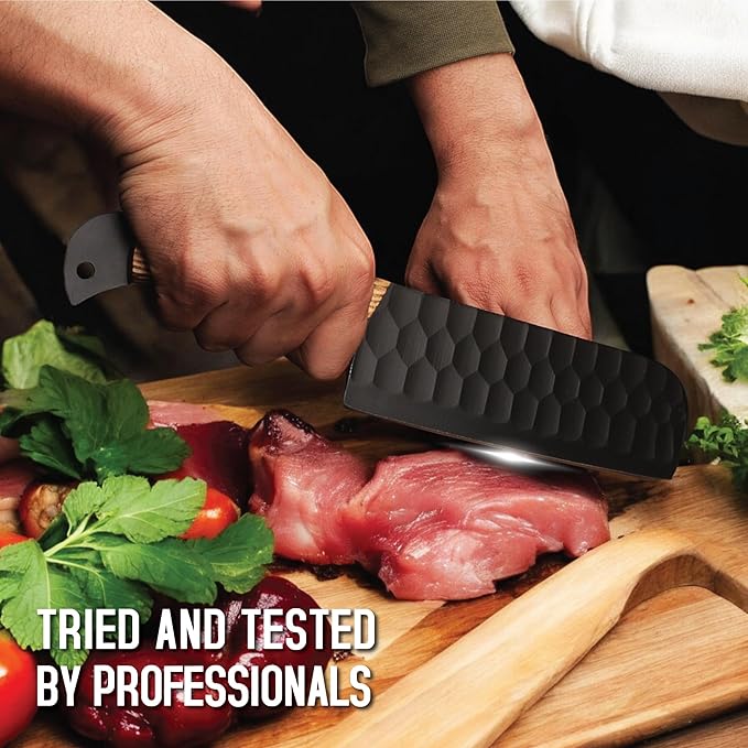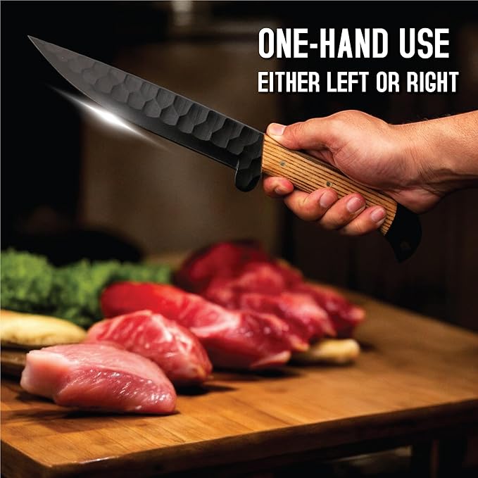 - HANDCRAFTED HANDLES: 5-inch ergonomic ashwood handles provide comfortable grip and superior control during food preparation
