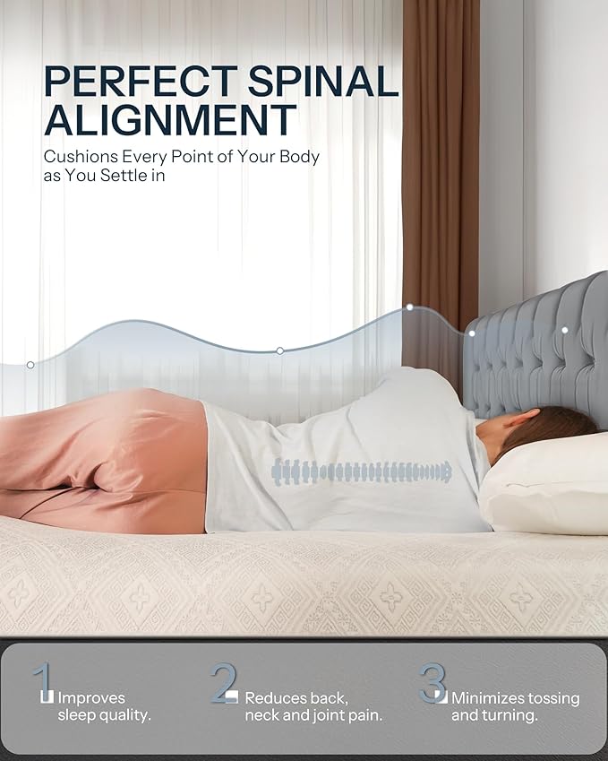 - DESIGNED FOR BALANCED REST: Expertly engineered, this gel memory foam mattress delivers full-body support, relieves pressure points, and promotes healthy spinal alignment. It reduces back, neck, and joint discomfort while minimizing motion for a calm, uninterrupted sleep that leaves you feeling refreshed.