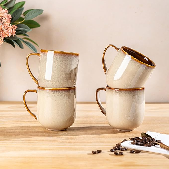 LERATIO Ceramic Dinnerware Sets for 4,16-Piece Reactive Glaze Plates and Bowls Set with Mugs,Highly Chip and Crack Resistant | Dishwasher,Microwave & Oven Safe Dishes set-Kahki