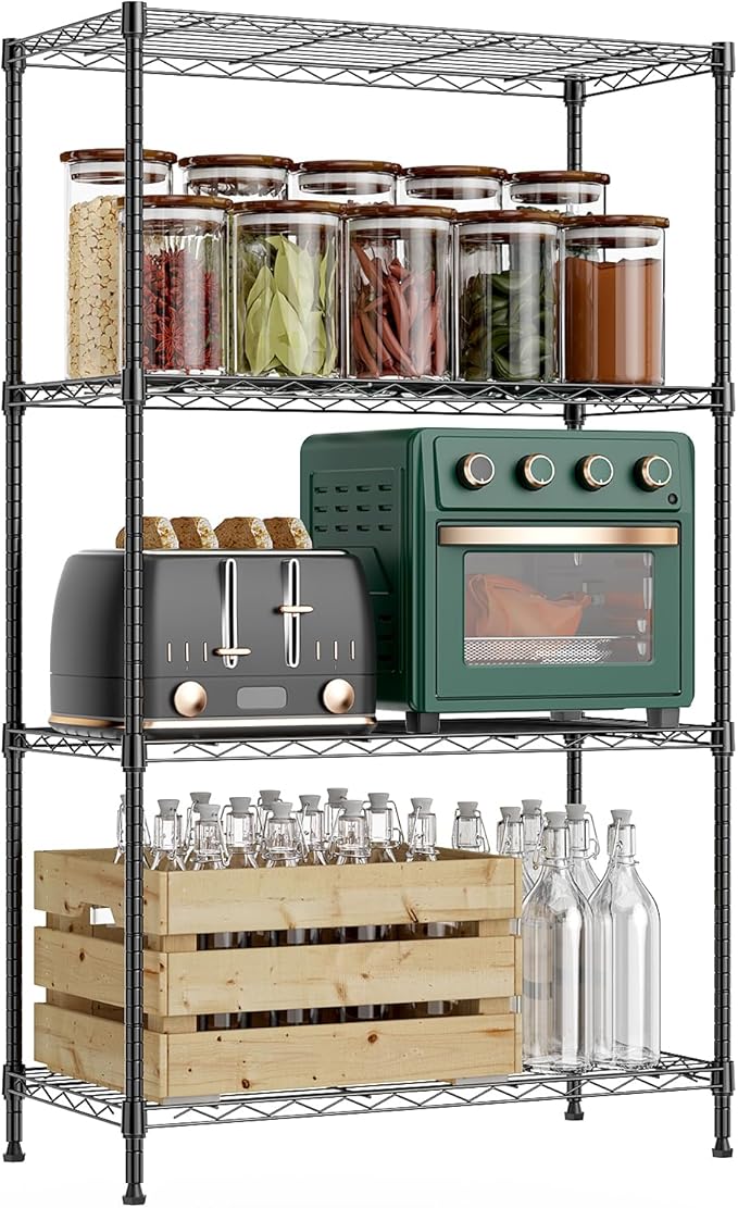 1000 lbs 4Tier Shelf Metal Storage Shelves Wire Rack Closet Organizers with Wheel for Garage Kitchen Bathroom Laundry Black 13.7" D x 29.5" W x 47.2" H