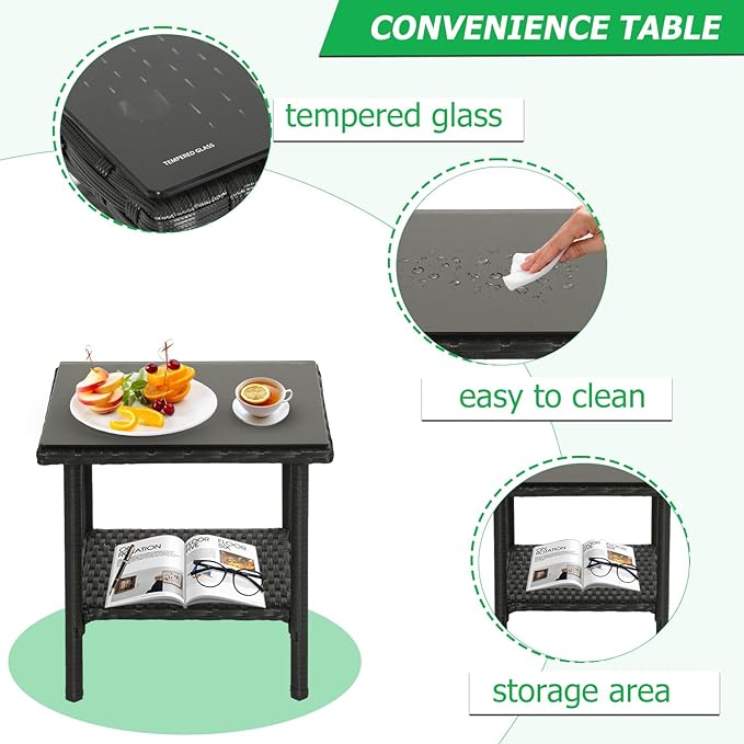 - MODERN STYLE: The patio set includes a table made of high-quality tempered glass for drinks, food, or décor. This sleek rattan design brings modern elegance and style to your outdoor furniture space.