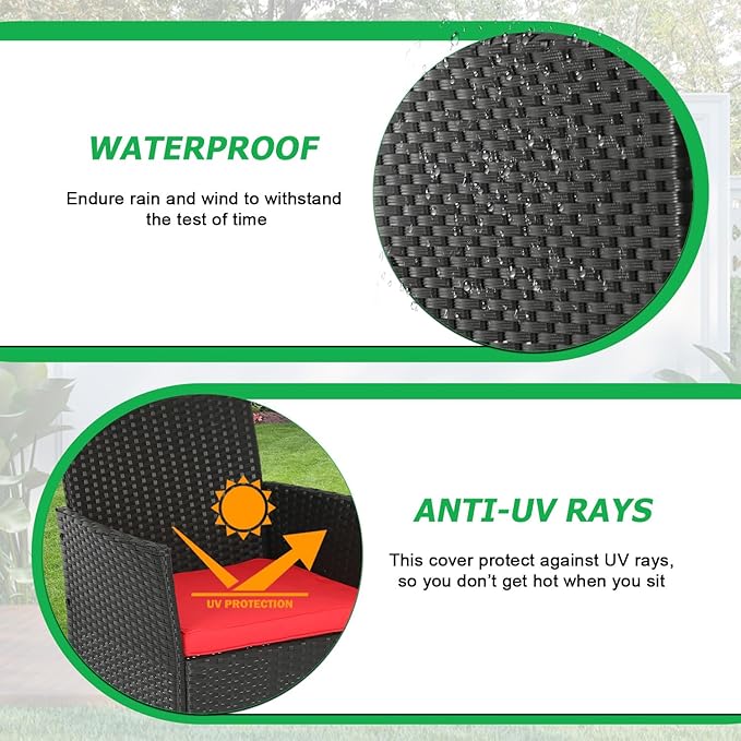 FDW | 3-Piece Patio Furniture Set | Black & Red | Outdoor Wicker Furniture with Coffee Table | Modern Rattan Chairs Conversation Set | Outdoor Seating | Weather-Resistant | for Porch, Garden, Lawn