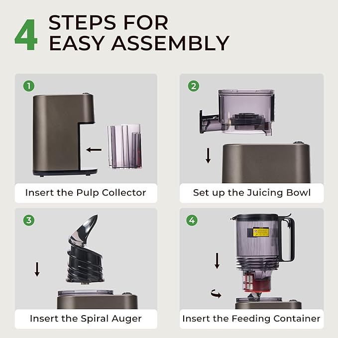 Masticating Juicer with 250W DC Motor, 5.4" Wide Feed Chute, Slow Cold Press Juice Extractor for Whole Fruits & Vegetables, High Juice Yield (DC-Gray)