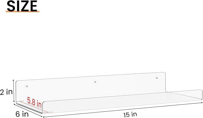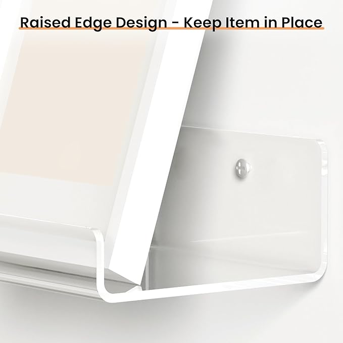 - 【STURDY ACRYLIC FLOATING SHELVES】 Made of thick acrylic, strong and durable enough to hold up to 8 lbs when you install the acrylic shelf firmly on the wall, not easy to break. All edges are well-finished for safety and smoothness. The lip on front prevents your decorations from falling off.