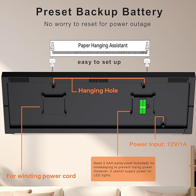 - 【Have to Plug-in】It's NOT battery operated. It must work with power adapter and 10.5 feet cable cord (included). You can install AAA battery as setting memory backup. It won't lose time. However, the AAA battery cannot use for power source for LED display.