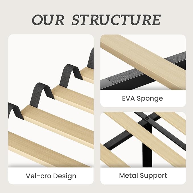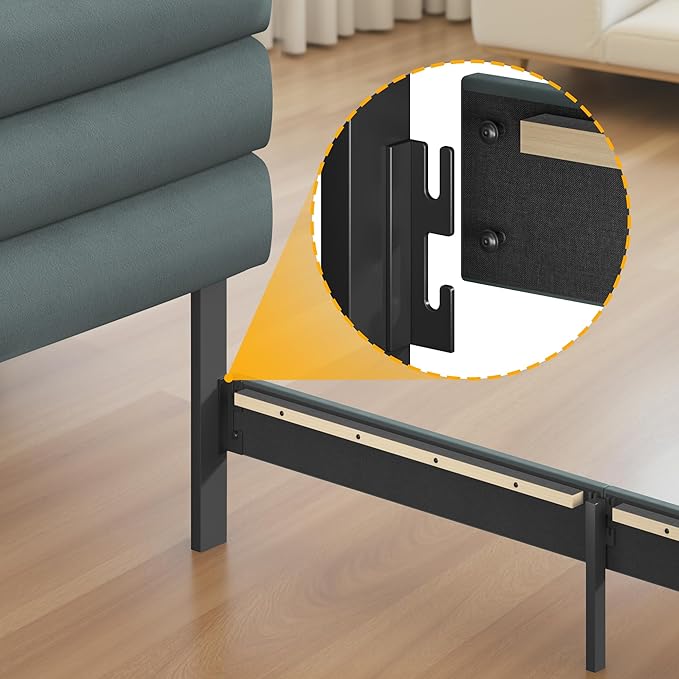- 【Twin Bed Frame with Noise Free & No Box Spring Needed】 The slatted portion of this twin bed frame has a Velcro design that you can easily attach or detach. The entire middle of the twin size bed frame is constructed with a metal support system, which greatly enhances its stability. At the same time, the metal support beam in the middle of this twin size bed frame with headboard is equipped with EVA sponge, which reduces the squeaks that may occur during use and makes it as noise-free as possible. The overall structure of this twin bed frame with headboard already provides enough support to be used straight away and there is no box spring needed