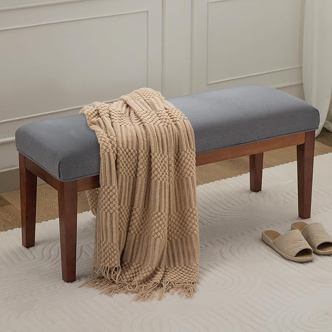 - Elegant & Stylish Design: Made with premium fabric,this upholstered bench enhances any space with its timeless style. Perfect for bedrooms, entryways,or living rooms,it blends with modern and classic decor,offering both comfort and functionality.