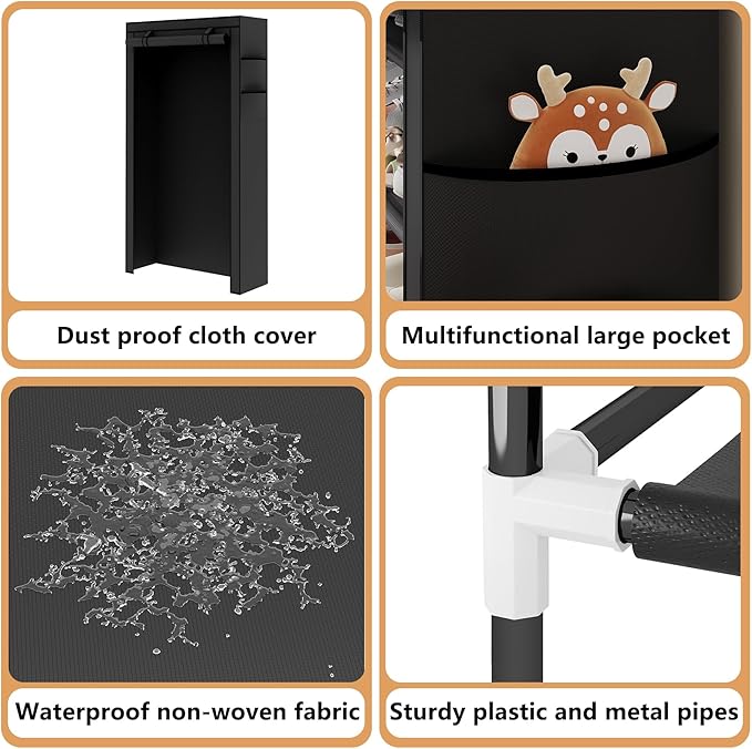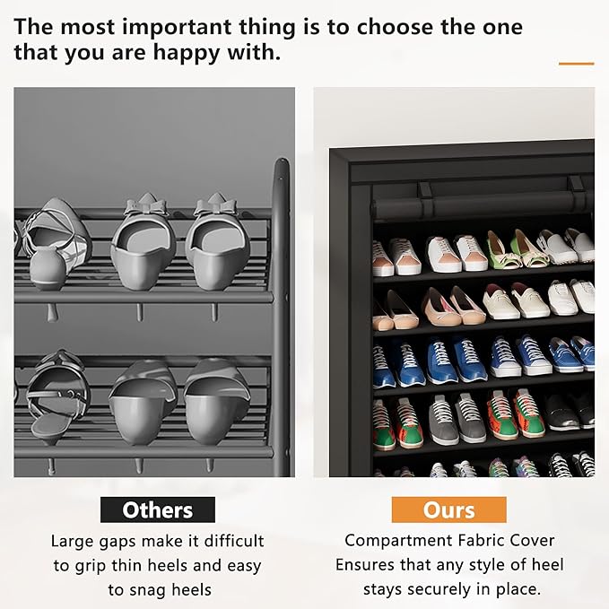 - [Dust-Proof Cover]Equipped with high-quality non-woven dust cover, double zipper design, Velcro roll-up door stowage, easy to open and close, easy to access. Effectively protect shoes from dust, while keeping the home environment clean and comfortable.