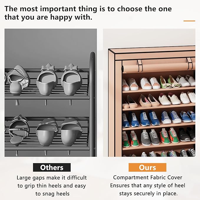 - [Dust-Proof Cover]Equipped with high-quality non-woven dust cover, double zipper design, Velcro roll-up door stowage, easy to open and close, easy to access. Effectively protect shoes from dust, while keeping the home environment clean and comfortable.