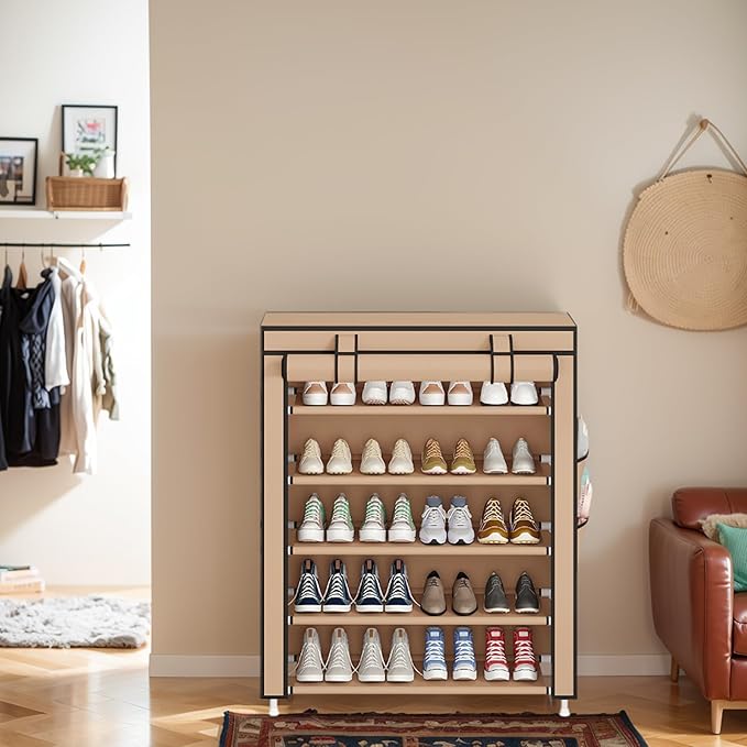 - [Dust-Proof Cover]Equipped with high-quality non-woven dust cover, double zipper design, Velcro roll-up door stowage, easy to open and close, easy to access. Effectively protect shoes from dust, while keeping the home environment clean and comfortable.