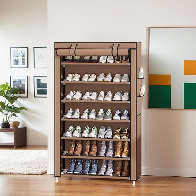 - [Dust-Proof Cover]Equipped with high-quality non-woven dust cover, double zipper design, Velcro roll-up door stowage, easy to open and close, easy to access. Effectively protect shoes from dust, while keeping the home environment clean and comfortable.