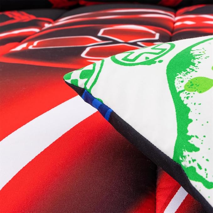 - 【Package Contents】1* Full Game Console Comforter 79“x89”(200x228cm),1* Fitted Sheet 54“x75”(137x190cm),1* Flat Sheet 96“x81”(244x206cm), 2* Matching Pillow Cases 19“x27”(50x70cm)