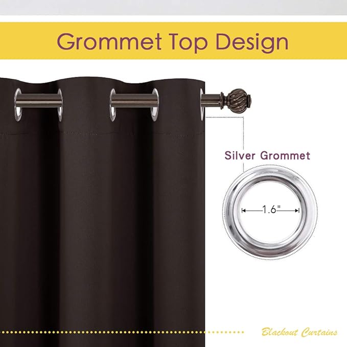 NICETOWN Toffee Brown Blackout Curtains 68 inches Length for Laundry Room, 2 Panels, 42" Wide, Thermal Insulated Decoration Drapes for Office Window