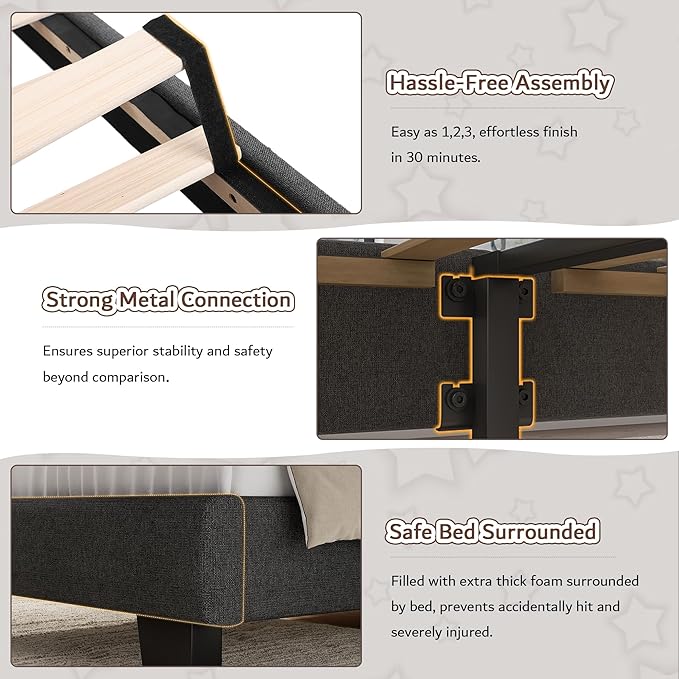 - Special Feature : Easy Assembly, Noise-Free, Upgraded Heavy-Duty Structure, Upholstered Headboard