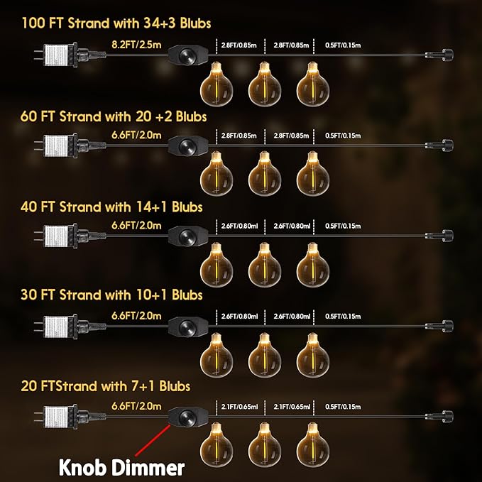 - Built to Endure, Designed for Versatility: Engineered with commercial grade quality, our outdoor lights bravely withstand harsh winds, heavy rain, and even snow, ensuring year-round reliability. The shatterproof bulbs can endure extreme heat up to 122°F, while the waterproof slide switch adds an extra layer of protection. Unlike other string lights that made by glass which easy to crack and heavy, the bulbs of our 100FT G40 outdoor backyard lights are made by plastic. It won’t be easily broken while dropping down or blow away by the wind, much safer for using, keep you away from dangerous shards.