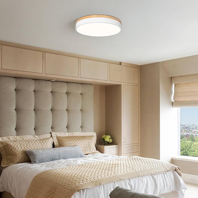 - Modern & Simple Design: 36 W LED Dimmable light fixtures ceiling mount lamp framed by eco-friendly oak wood and metal, the light cover is high transmittance acrylic. Drum flat minimalist style with protable easy install. As equivalent to 200-250 W traditional incandescent light