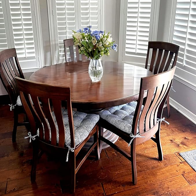 Barnett Home Decor Dining Chair Cushions with Ties, 16.5 x 18, Pack of 2 – Tibet Blue – 100% Cotton, Latex Foam Fill
