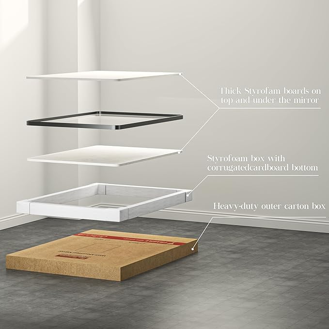 - BATHROOM MIRROR FOR OVER SINK: Our Bathroom Mirror features advanced 4-layer HD float glass technology, delivering crystal-clear, distortion-free reflections. The 3mm thickened glass provides exceptional stability and durability, ensuring safety by preventing breakage. Easy to clean and maintain, this wall-mounted mirror is the perfect addition to your bathroom or vanity area